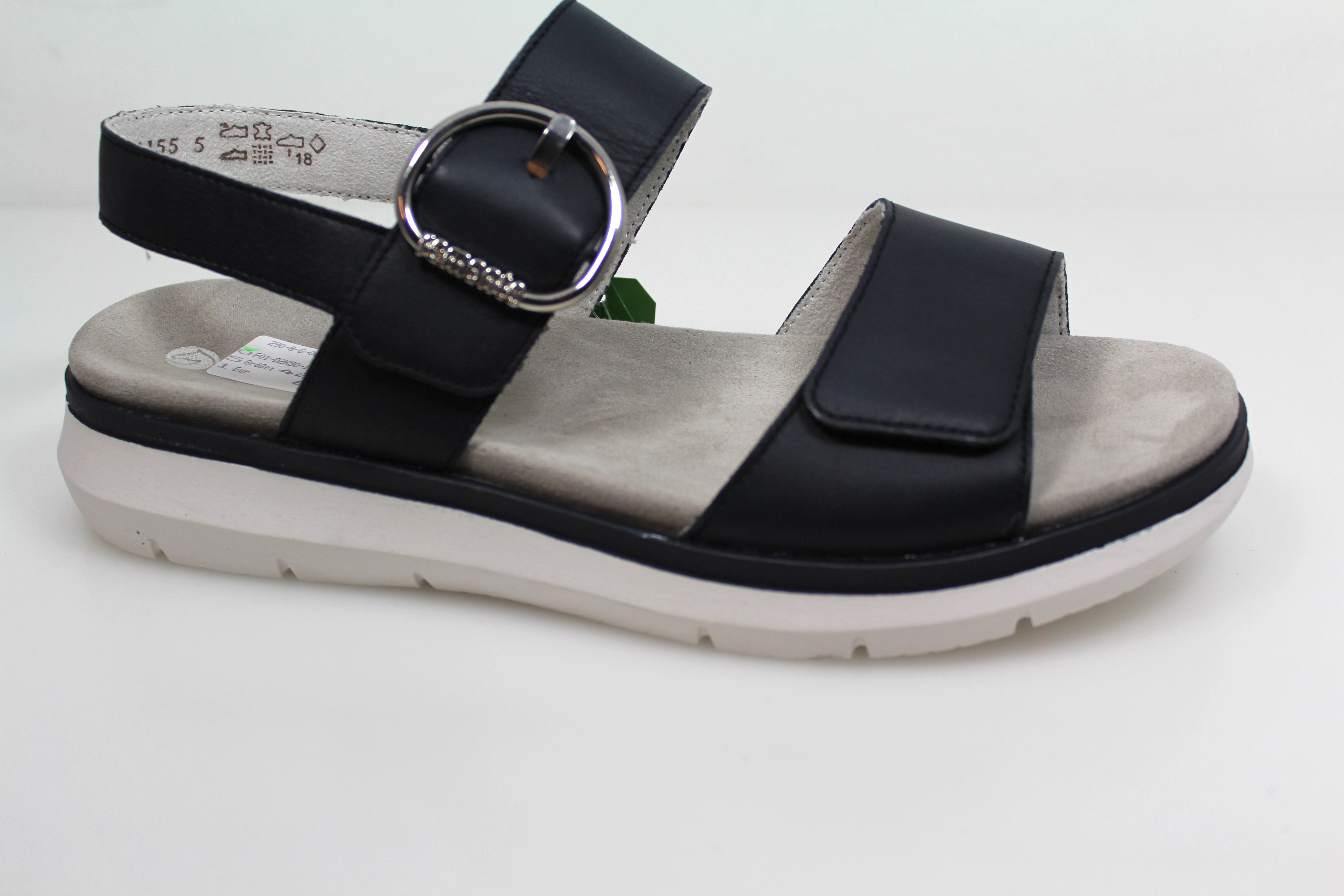 Ideal für empfindliche Füße, Sandale in blau und einen Klettverschluss Riemen im Vorderblatt , gepolsterte Innensohle in Alcantara Optik ,Wechselfußbett daher auch für lose Einlagen geeignet ,flexible Gummilaufsohle mit 20mm Absatz