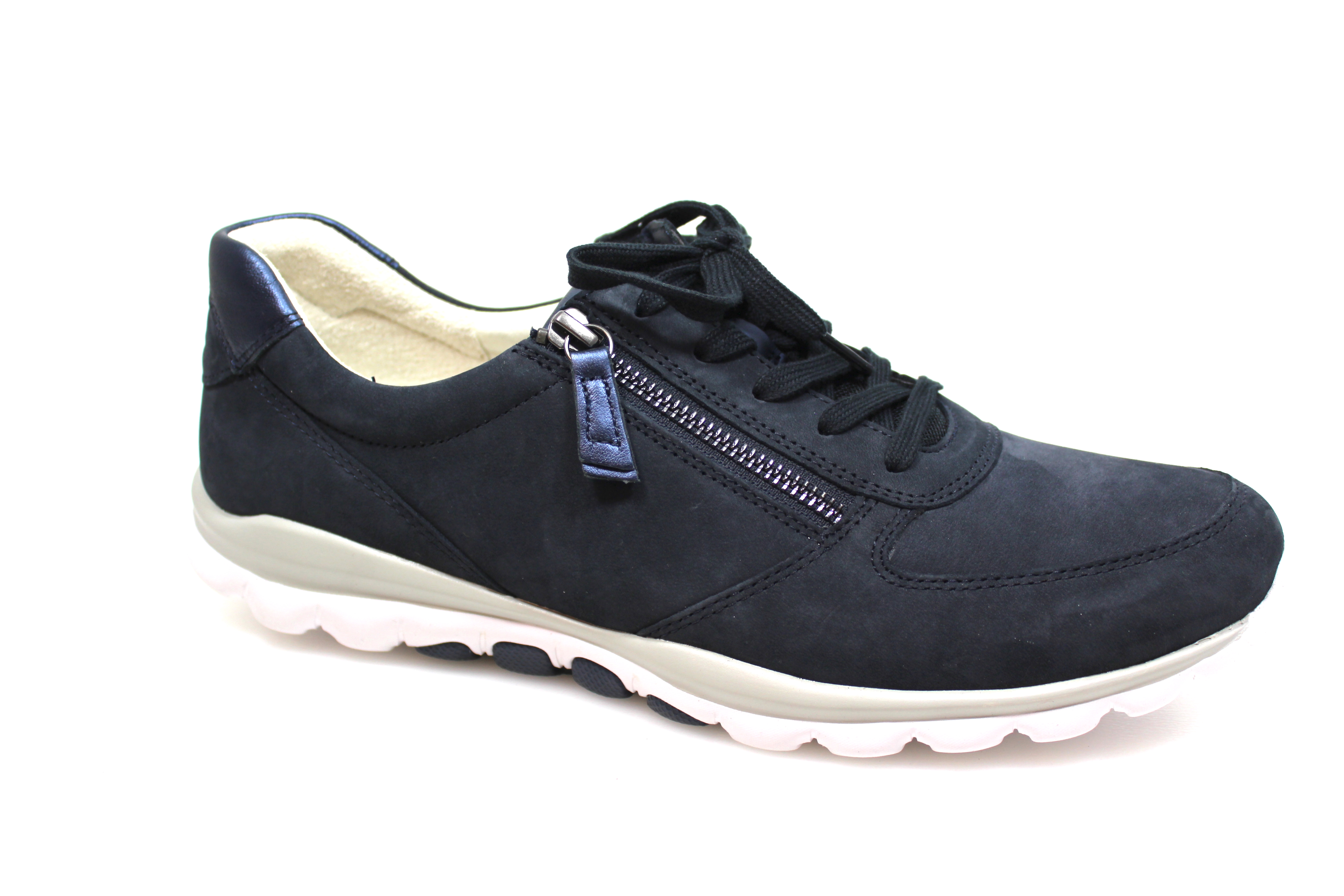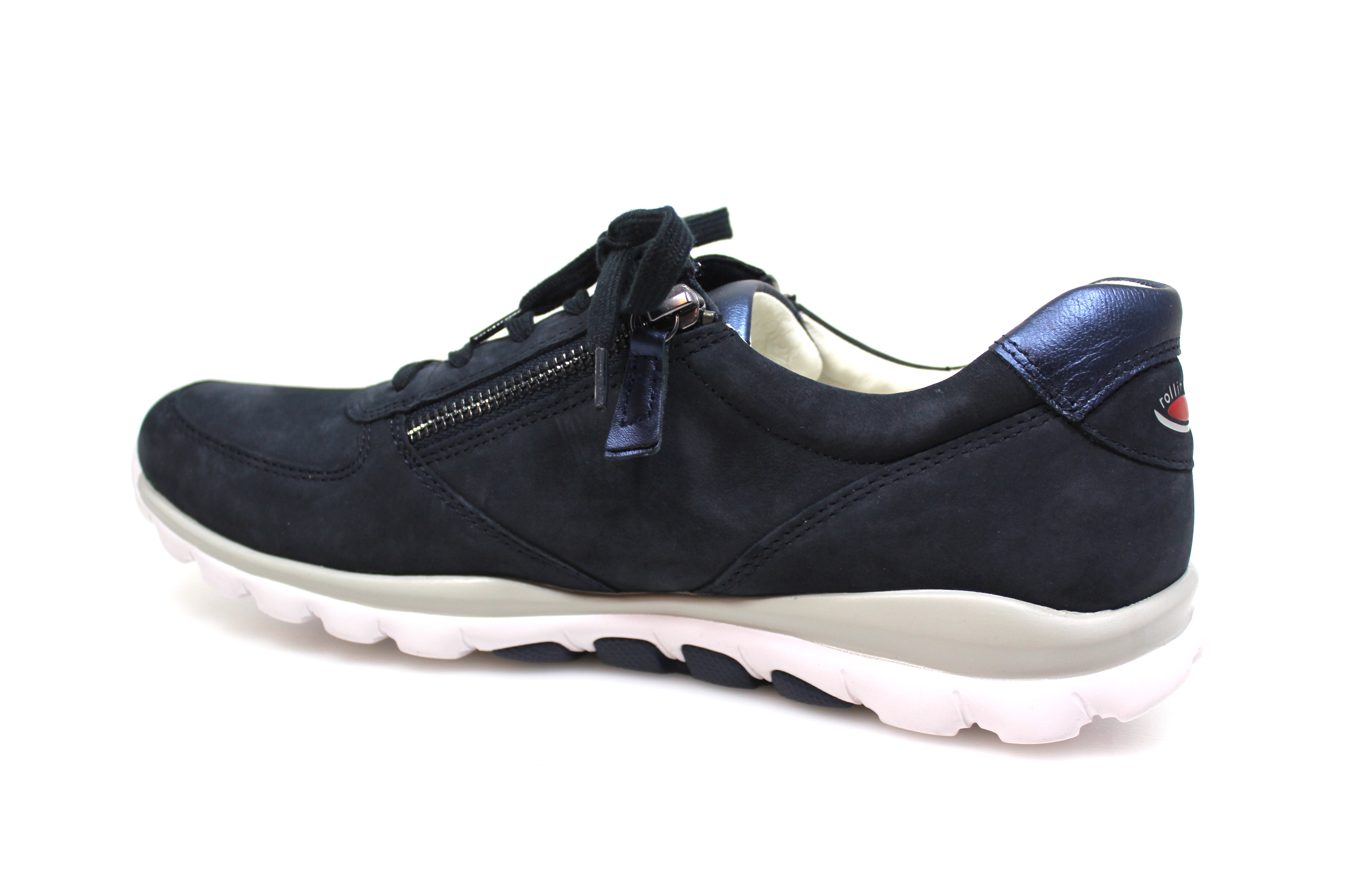 Der GABOR Rollingsoft Sneaker in dunkelblau Nubukleder für Damen kombiniert sportlichen Stil mit komfortabler Technik. Das Obermaterial aus Nubukleder wirkt robust und elegant zugleich. Innen sorgt eine Leder Abfütterung für ein angenehmes Fußklima, während das herausnehmbare OPTIFIT-Wechselfußbett zusätzlichen Komfort bietet. Die Sohle ist synthetisch/gummiartig profiliert, der Keilabsatz misst ca. 4 cm. Verschluss: Schnürung und Reißverschluss. Passform niedrig, Breite F. Ideal als Freizeitschuh oder Halbschuh mit sportlicher Optik.